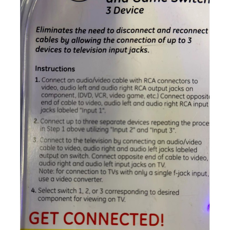 GE 3 Device Audio/Video AV Switch Component Video Stereo Audio Game 3 in 1 out