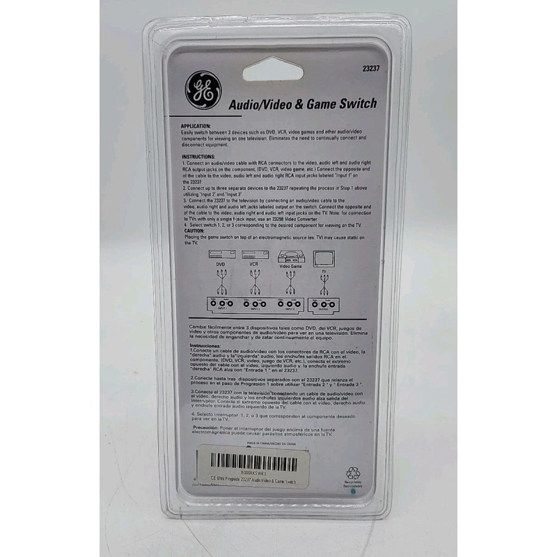 Easily connect three audio and video devices with the GE AV23237 Audio Video Game Switch. Designed to seamlessly integrate with your entertainment setup, this versatile switcher is ideal for linking gaming consoles, TVs, and home theater systems. The sleek black finish ensures it blends smoothly with your other AV equipment.Crafted for convenience, the GE AV Splitter/Switcher model AV23237 is manufactured in China and does not come as part of a custom bundle. It's a straightforward, reliable solution for managing multiple audio and video sources without the clutter of cables. Enjoy the ease of switching between your devices with this user-friendly switch.