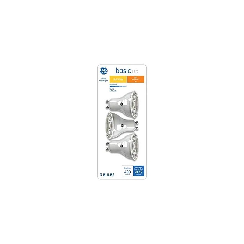 GE Basic 3-Pack 50 W Equivalent 2700k Warm White Mr16 LED Light Fixture Light Bulbs GU10 pin Base 120V Light Fixture Light Bulbs