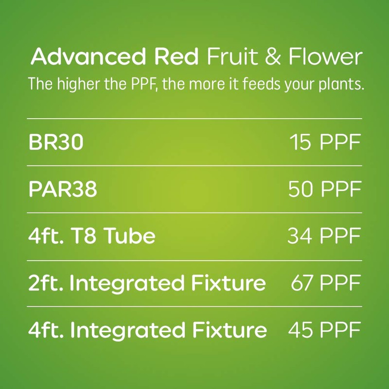 GE Grow Light LED with Advanced Red Light Spectrum for Flowers and Fruit is designed to fit your plant's growth stage. GE's Grow Light uses an advanced red light spectrum that allows plant pigments to optimize their light harvesting and inspired by best practices used by professional growers. It's designed for mature plants at the fruiting or flowering growth stage. Compared to typical purple grow lights, the light features high PPF or Photosynthetic Photon Flux to provide more light for photosynthesis and growth. The white light appears more natural to the human eye, so you can appreciate your plant's beauty and spot pests or discolorations to help keep your plants healthy. Use the Advanced Red Light Spectrum with high light plants like tomatoes, cucumbers and peppers at the fruiting or flowering stage of growth.