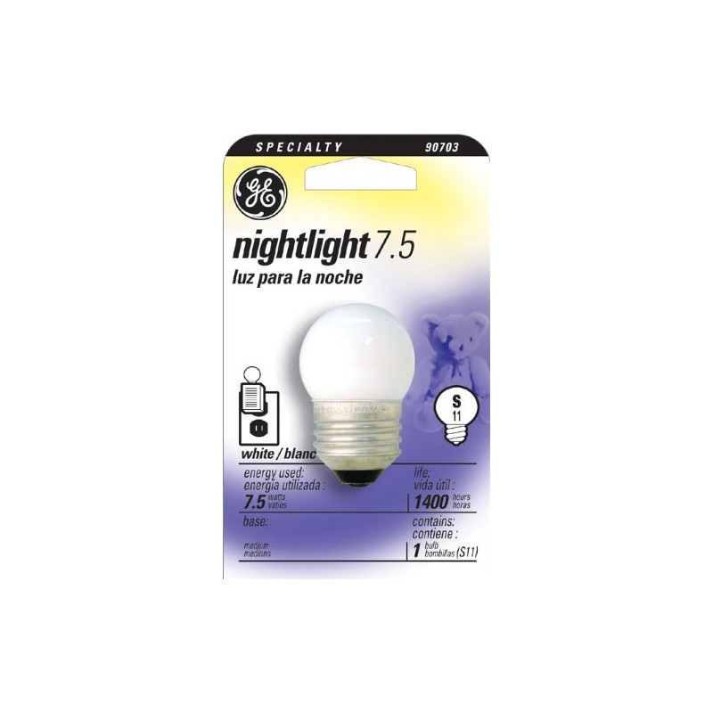 GE Lighting 41267 Nightlight Incandescent Bulb S11 Medium Screw (E26) 120V 7.5W Soft White, 12-Pack