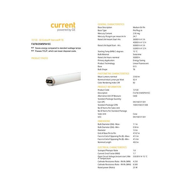 GE Lighting 72130 F32T8/25WSPX41ECO, GE Ecolux Starcoat T8, (2-PACK)