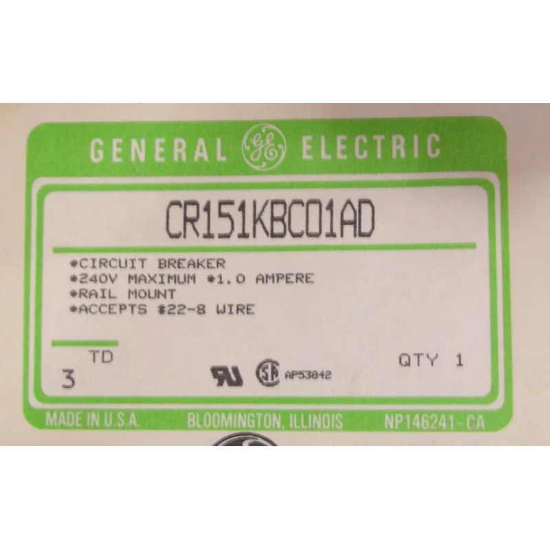 GE New General Electric GE Circuit Breaker CR151KBC01AD 1 Amp 1 Pole Ships Today