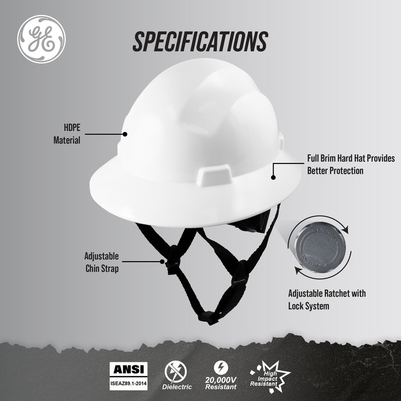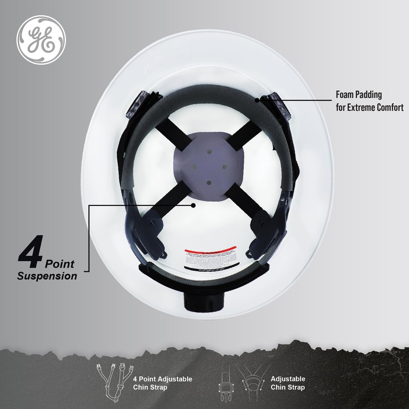 - PREMIUM MATERIAL: Experience unmatched durability with the GE Hard Hat, crafted from 100% high-density polyethylene (HDPE) for superior strength and longevity in demanding work environments.