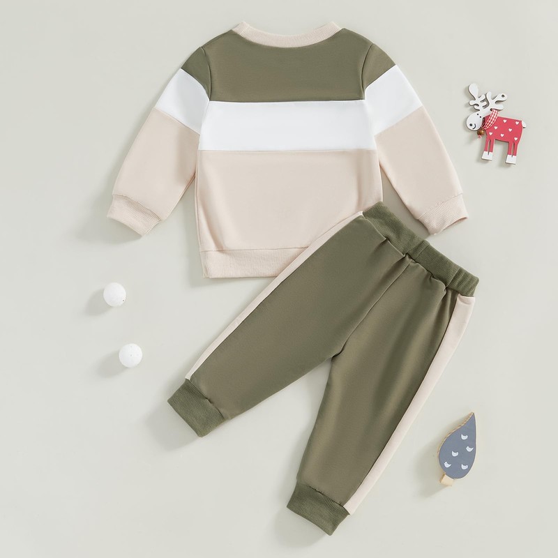 Geagodelia Toddler Boy Fall Clothes Crewneck Cute Embroidery Color Block Sweatshirt Elastic Waist Trouser 2pcs Winter Outfits (Green, 18-24 Months)