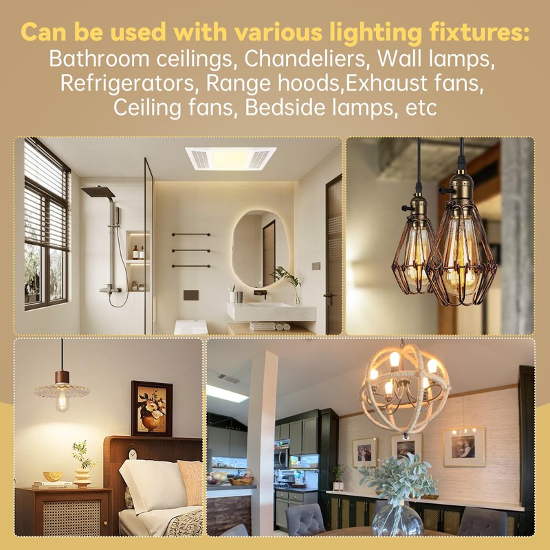 - Widely used: Led light bulb use standard E27 base Can be used in conjunction with various lighting fixtures such as bathroom ceilings, chandeliers, wall lamps, refrigerators, range hoods, exhaust fans, ceiling fans, bedside lamps, etc.
