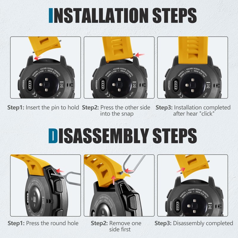 - ✅【Easy to Install】The garmin watch band Replacement can be installed to your watch effortlessly. With the tools in the packages, you can finish the installation smoothly.