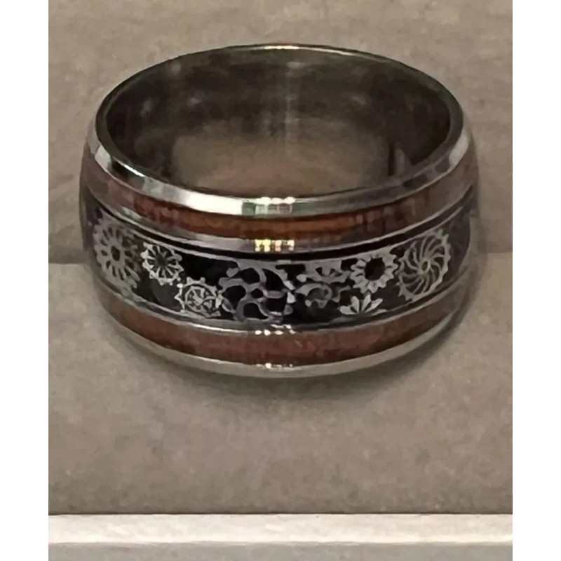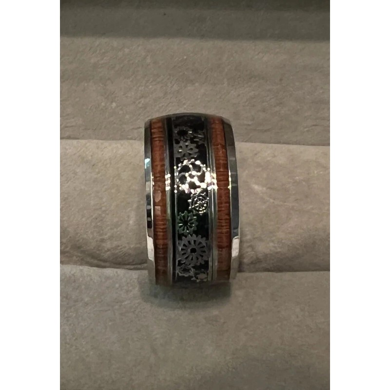 Gear 10 mm Stainless Steel And Wood Grain Sizes 7 And 8 Free Shipping!!