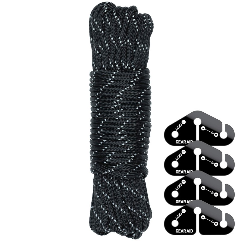 GEAR AID Taut Line Kit with 550 Paracord for Hanging Gear on a Travel Clothesline, Black, One Size