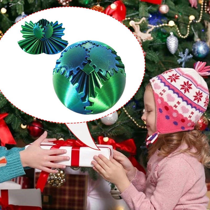 Gear Ball 3D Printed Fidget Toy Spinning Gear Sphere for Stress Relief Anxiety Fun Desk Toy for Adults Kids Stocking Filler Birthday Christmas White Elephant Gifts (Lustrous Green, Diameter: 2.5 In)