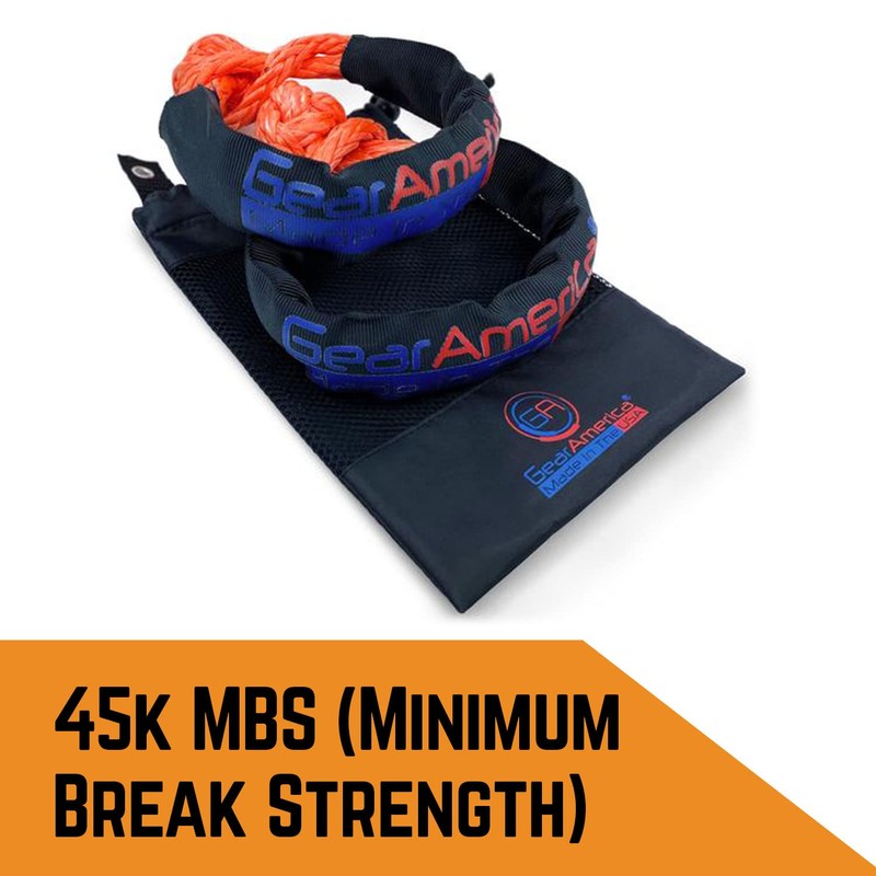GearAmerica Synthetic Soft Shackles 1/2” Orange – Made in The USA – 45,000 lbs (22.5 US Tons) Strength – Off-Road Recovery, Towing & More – Stronger Than Steel D Rings – Bag Included 2PK
