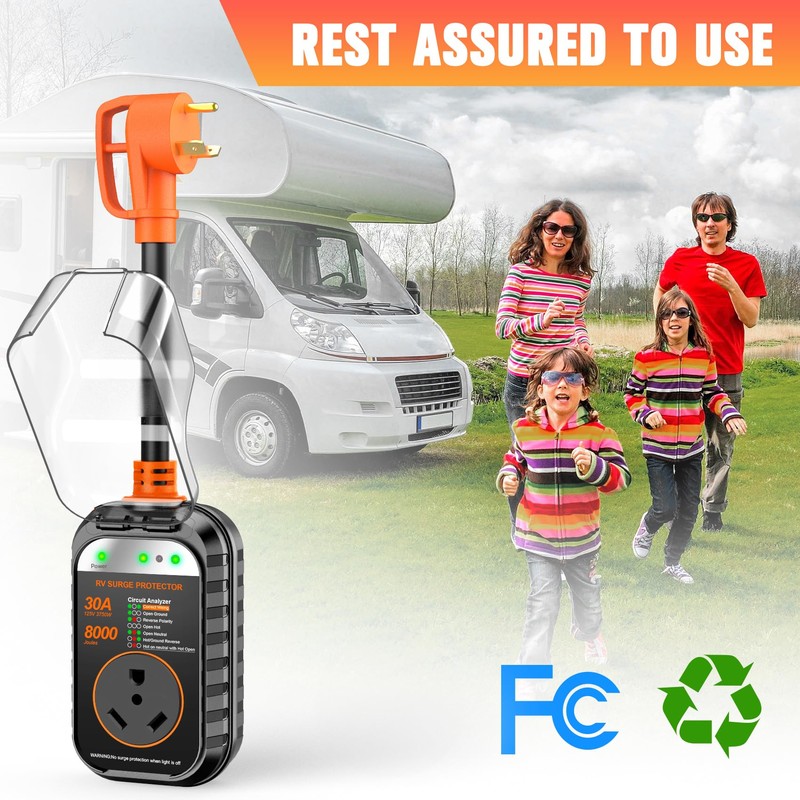 - Portable RV Surge Protectors: GEARGO RV Surge Protectors are designed to identifies faulty power and offers 8000 Joules of surge protection. The adapter circuit analysis instrument is used to detect the connection error of the electric system with a grounded safety feature for your electronic equipment.