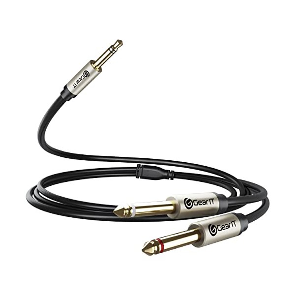 - PROFESSIONAL GRADE - Interconnect harmoniously iPhone, PC/Laptop or similar device with 3.5mm 1/8" TRS output to devices with Dual 2x 6.35mm 1/4" TS Mono Stereo Y-Cable Splitter jack inputs such as speaker, receiver, amplifier, mixer, Hi-Fi stereo, home theater and recording equipment