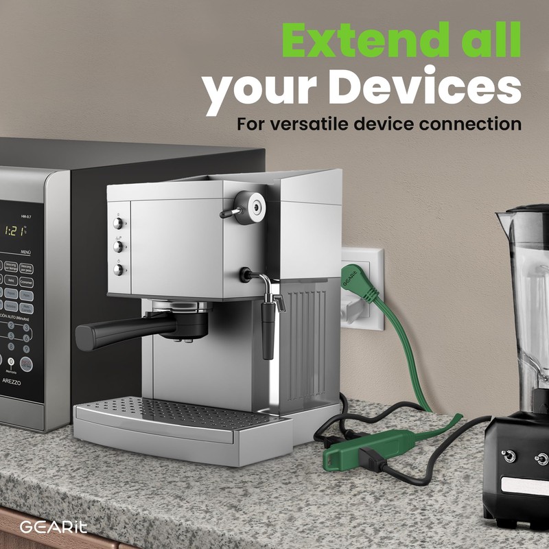 GEARit 360 Rotating Flat Plug Extension Cord with 3 Outlets (10ft, Green) 16A...