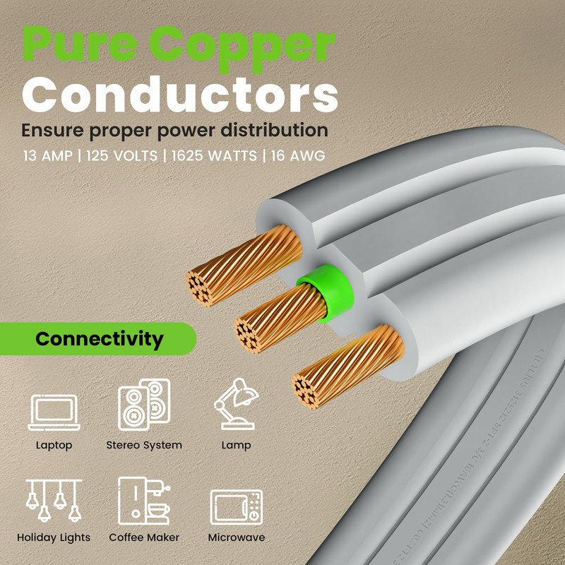 - High Quality - ETL Certified, 3-prong grounded plug ensures safety and reliability, delivering 13Amp, 125 Volt, and 1625 Watts of power for all your electrical needs. Built to last with premium materials, ensuring long-term use.