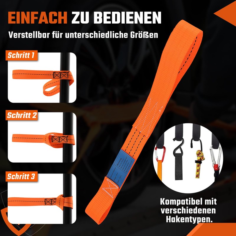 6. Will be a life-long strong nylon soft loop strap to safely transport your vehicle; all real description: heavy soft loops binding straps protect your ATV, snowmobile, UTV, motorcycle, lawn equipment and more during trailering.