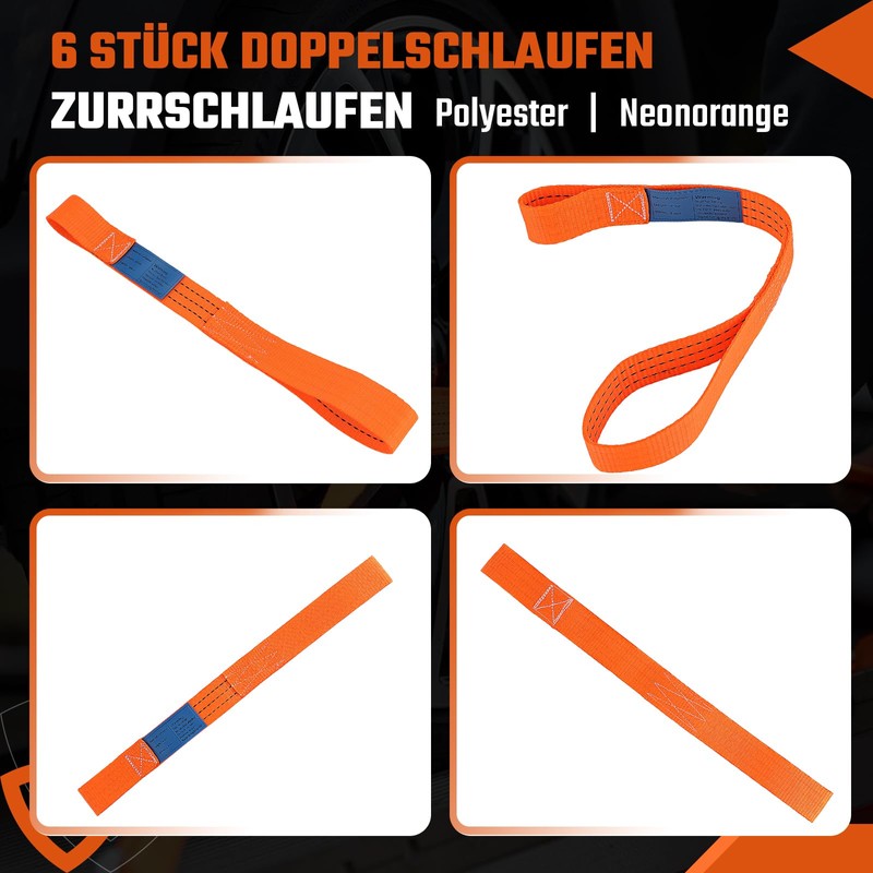 GEARMONSTER 6-Piece Belt Loops, 450 x 38 mm, Lashing Loops, 1000 kg, Tension Strap, 1,000 daN for Car, Motorcycle, Camping, Climbing, Suspension, Transport, Load Securing Lashing Strap, EN-12195-2