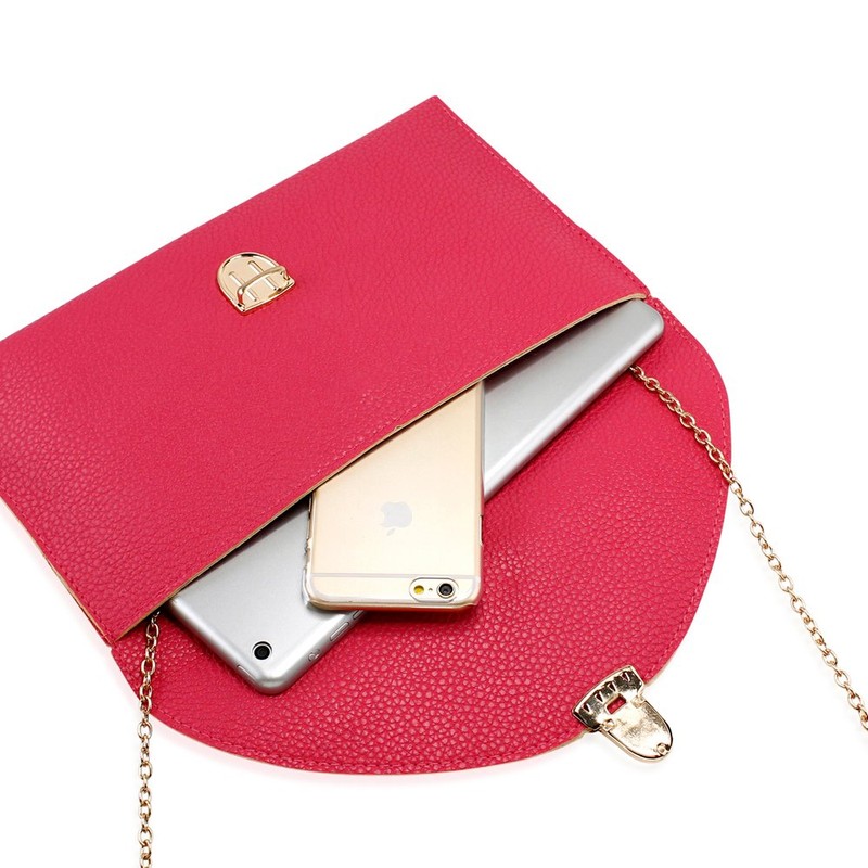 GEARONIC Clutch Purses, PU Leather Evening Envelope Clutch Handbags Womens Crossbody Bag with Chain Strap Hot Pink