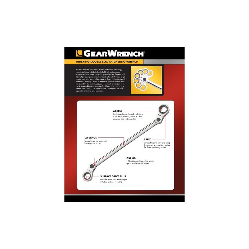 GEARWRENCH 85484 17mm x 18mm Indexing Double Box Ratcheting Wrench