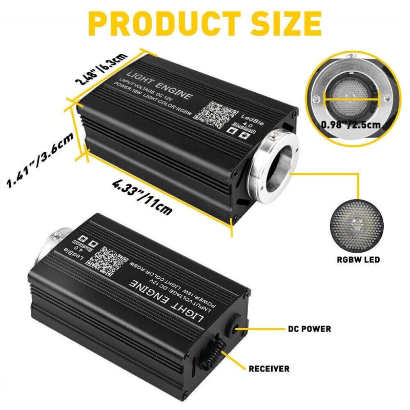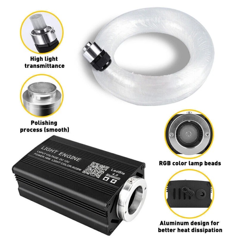 Our transparent optical fiber is superior in quality and the lamp source with an RGBW bead can send out the light source with multiple colors.