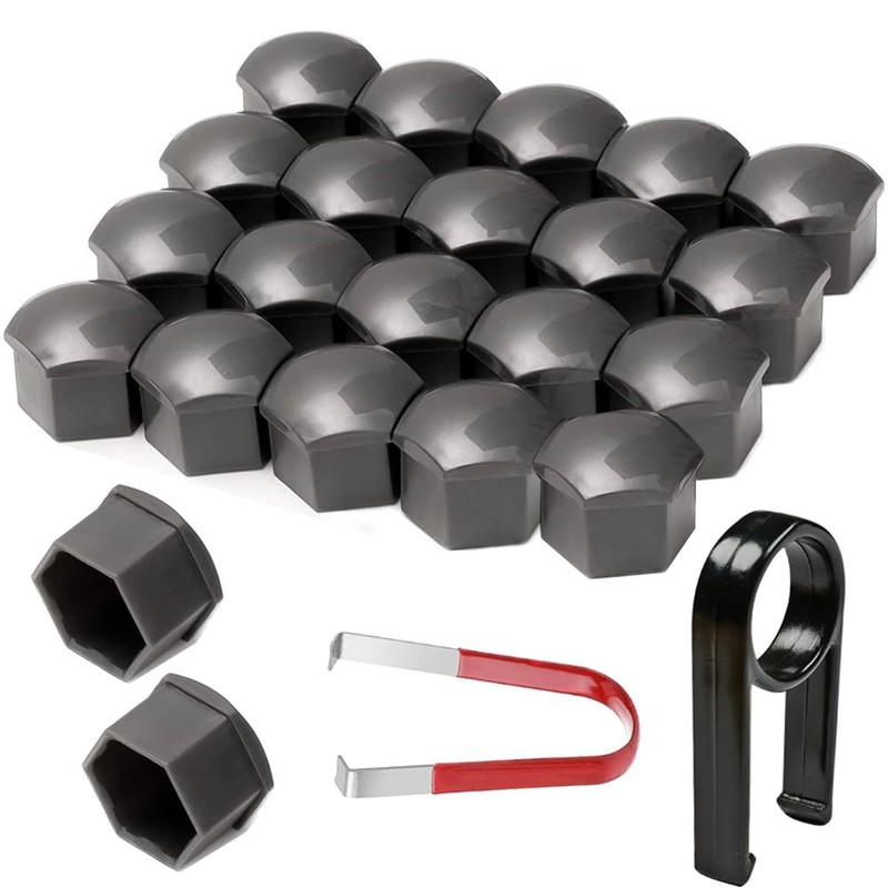 - Package contents: this set contains 22 wheel nut caps and a 2 x tool for removing the nut cover, which generally corresponds exactly to the number of tyre nuts of a car.
