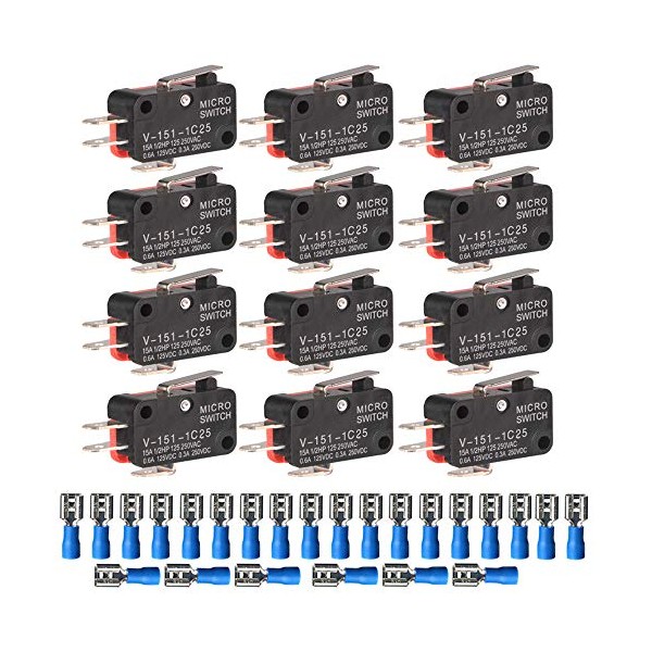 Gebildet Gebildet 12pcs V-151-1C25 125V/250V 15A Miniature Micro Limit Switch Momentary SPDT Snap Action Hinge Lever Type+24pcs Terminals