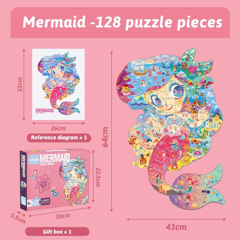Gebiuhoo Mermaid Puzzle for Children, 128 Pieces, Mermaid Puzzle, Cartoon Children's Puzzle with Gift Box, Jigsaw Toy, Seamless Stitching for Boys and Girls from 4, 5, 6, 7, 8, 9, 10, 11, 12 Years