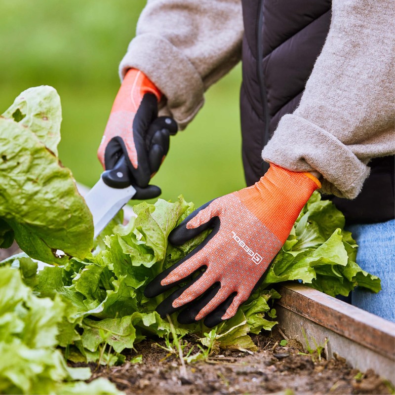 Gebol Clivia | 1 Pair | Size S (Size 7) | Garden Gloves with Touch Function | Breathable Feel-Good Knit Made of Recycled Material | for Women | Orange