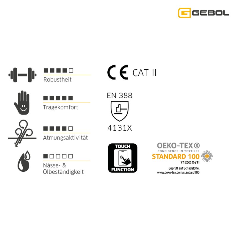 - Touch capability: specially developed for touchscreen operation thanks to integrated copper fibres in both index fingers and thumb.