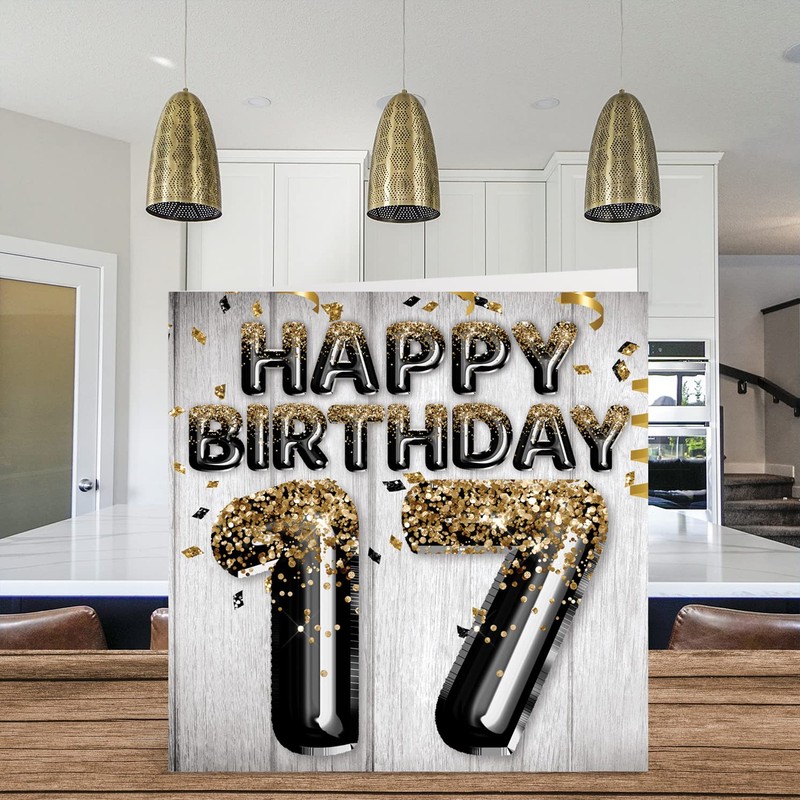 - Bringen Sie sie zum Lächeln mit dieser tollen Geburtstagskarte: Diese außergewöhnliche hochwertige Geburtstagskarte für ihn zeigt das Design von schwarzen und goldenen Glitzerballons mit der Aufschrift "Happy Birthday 17". Wenn Sie auf der Suche nach lustigen Geburtstagskarten für Männer sind, dann wird diese Geburtstagskarte mit Sicherheit zum Lachen bringen.
