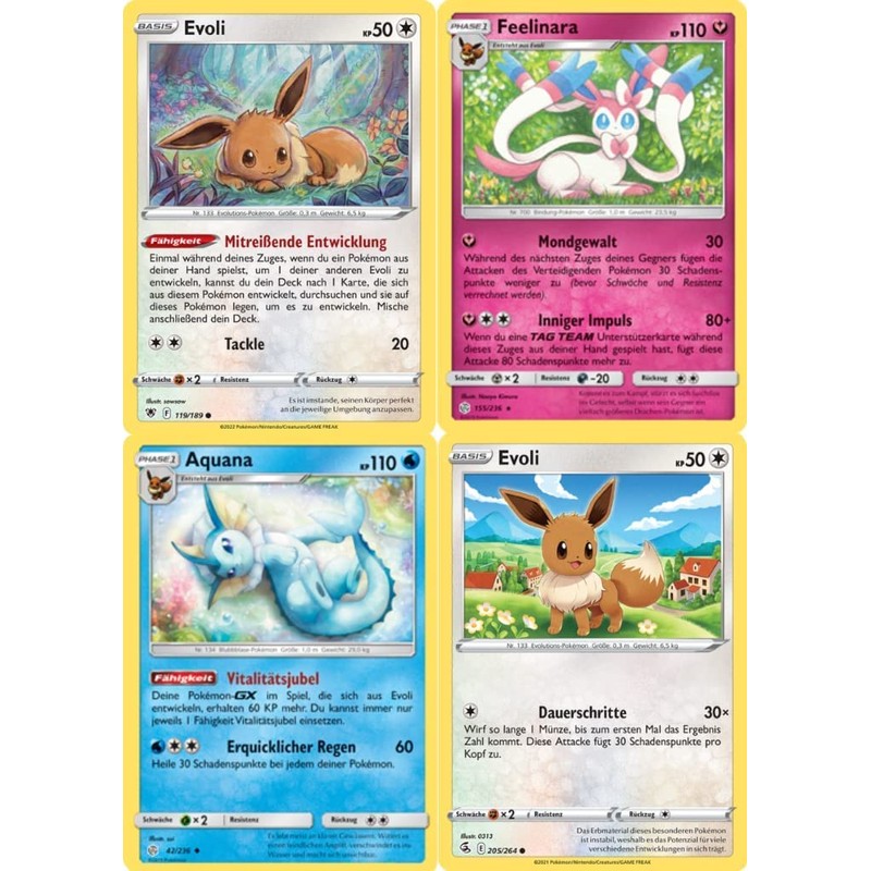 geco Pokemon Karten - 4er Set - Evoli + Entwicklungen