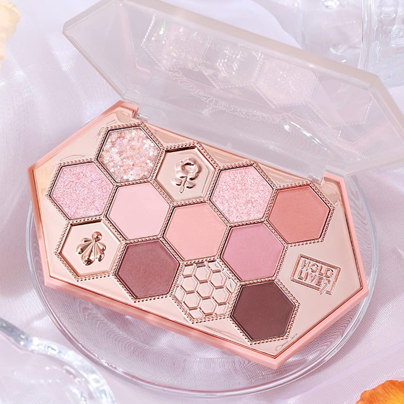 - HOLD LIVE Honeycomb Diamond Eyeshadow Palette with an overall orange brown base that is suitable for beginners, and can be easily incorporated into office makeup or daily makeup