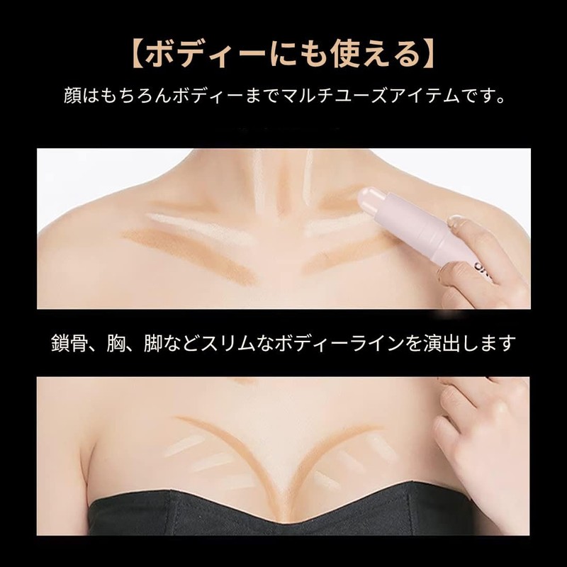 - (Can be used on the body) This is a multi-use item that can be used on the face and body. Excellent adhesion retention with a moist sliding texture for a smooth blend and a non-sticky finish. Creates a slim body line such as collarbone, chest, and legs