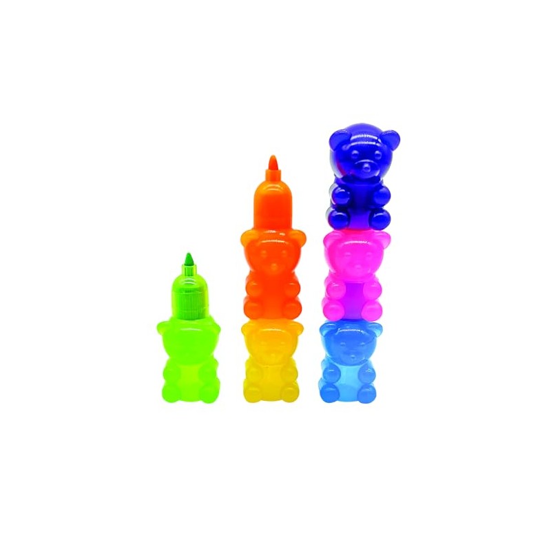 - Fun and Functional: Our bear-shaped book highlighters are not just cute; they're practical too. With 24 sets per bag, each colored highlighter stands at a compact 2.5” with a total height of 9” when stacked together.