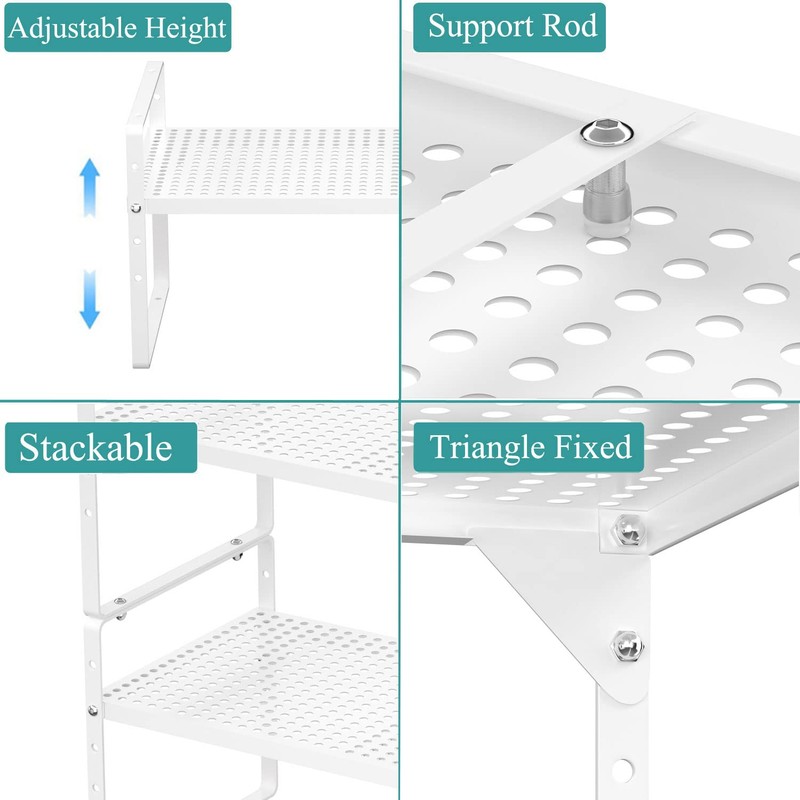 - ✅【Multifunctional Storage Shelves】: These expandable shelf organizers would be great in the pantry, kitchen, bathroom, laundry room or even the garage. Whether stacked as a two-tier shelf, or used individually side by side, It will instantly add a lot of storage space for you. Let all items be displayed at a glance.