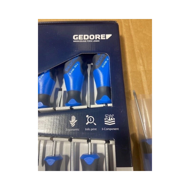 - GEDORE 1482319 3C-Screwdriver, Set 6 Pcs IS 4-8 Ph. 1-2 Practical set composition in environmentally-friendly cardboard box For slotted and cross-head screws PH 3-component handles Power-Grip3 with hanging hole