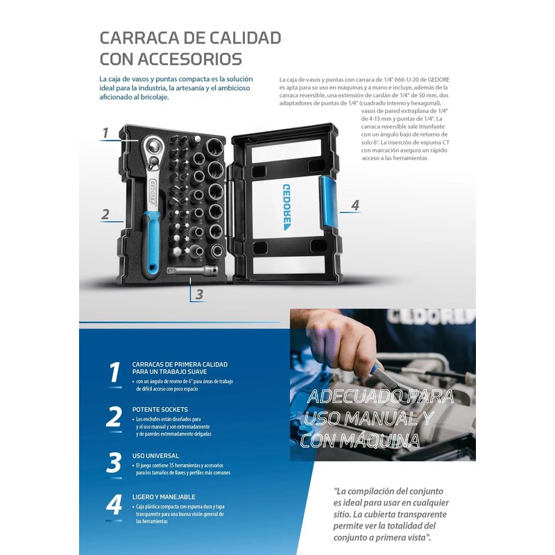 Gedore 666-U-20 1/4-Inch Socket Wrench Set - Blue/Silver (35-Piece)