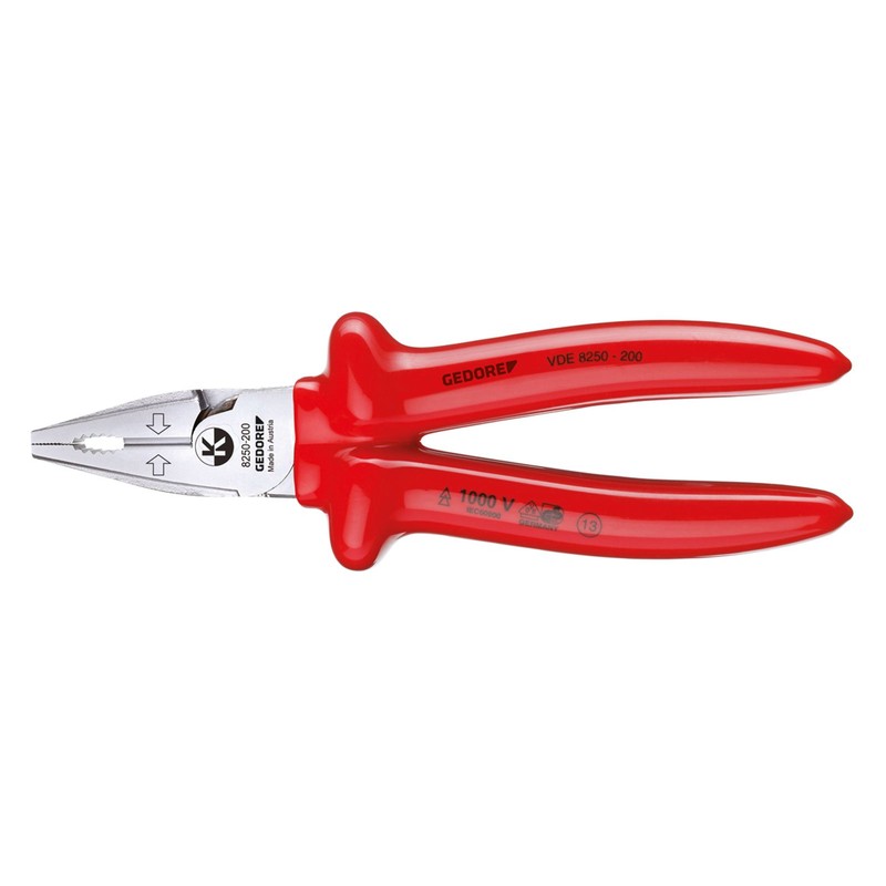 GEDORE VDE 8250-225 VDE Heavy Duty Combination Pliers with VDE Dipped Insulation 225 mm