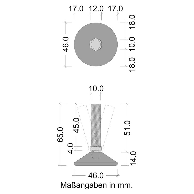 • Safety: thread: M10 – thread length: 45 mm – drive: bottom hexagonal wrench SW12 – slider: adjustable foot made of sturdy polyamide fibreglass reinforced