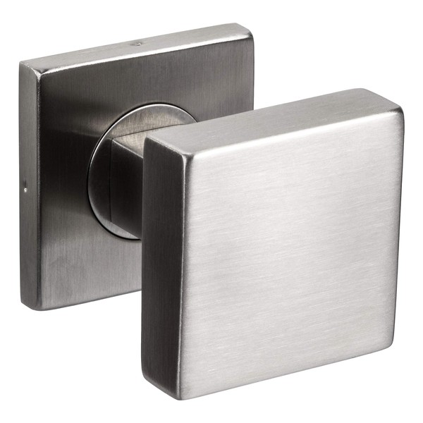 Gedotec Door knob on round rosette knob knob door knob diameter 55 mm square | non-rotatable | matt brushed stainless steel | 1 piece door fitting including push pin 80 mm and mounting material -
