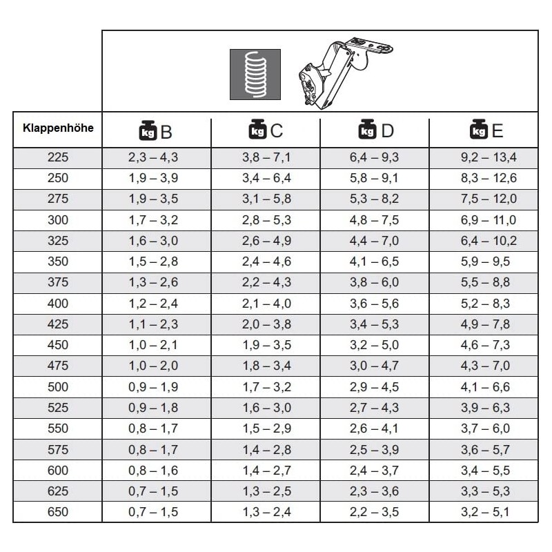 - Specifications: Häfele lift fitting, material: steel/plastic, colour: anthracite, model B for flap weight from 0.7 - 4.3 kg, body height/flap height up to 650 mm, opening angle up to 107°, opening angle upwards, adjustment: height, side, inclination, holding force