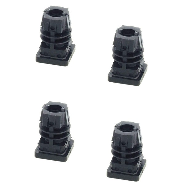 Gedotec Foot Caps Plastic Furniture Gliders with Inner Thread M10 | Threaded Plugs for Square Tube | Shaped Pipe Plugs Square | Lamellar Plugs 25 x 25 mm | Pack of 4 - Insert Sockets Black