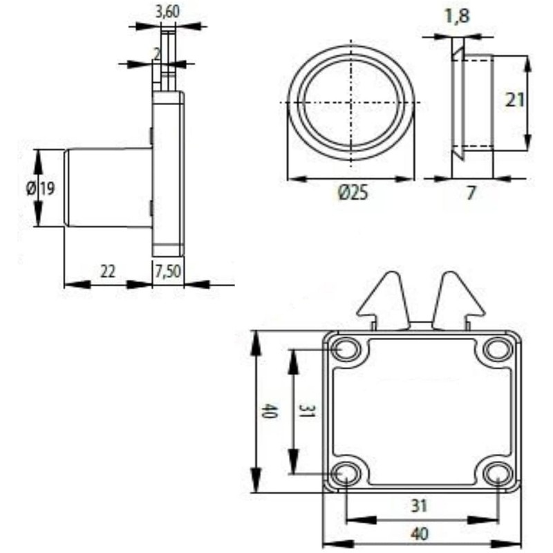 • Easy to retrofit or renew – hook bolt lock for screwing – backset with 25 mm – cylinder length: 22 mm – cylinder diameter: 19 mm