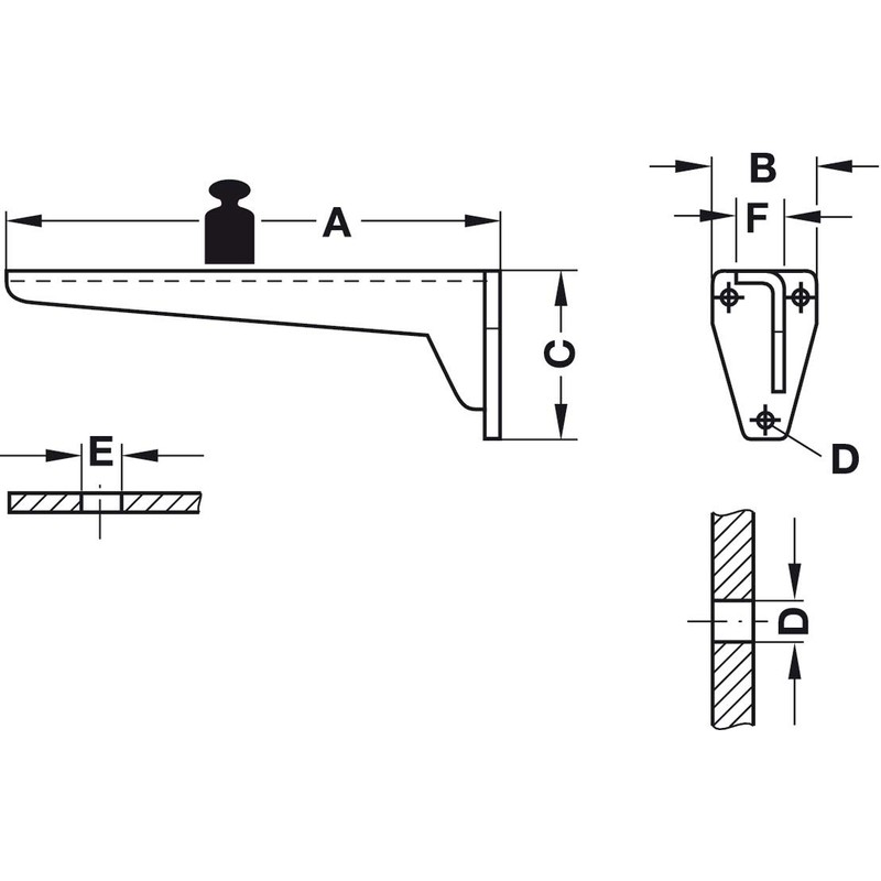 • Protection: Dimensions: AxWxC: 330 x 53 x 100 mm - Material thickness: 5 mm - Shelf angle with 3 holes - Material: Steel - Surface: shelf console grey galvanised - T-profile for max. Stability - Load capacity: max. 300 kg / pair - tested according to DIN 16337:2013