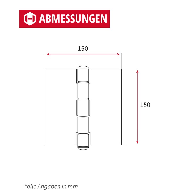 Gedotec Hinges for Welding, 1 Piece, Heavy Duty Door Hinges for Garden Gates and Machines, Gate Hinge 150 x 150 mm, DIN Can Be Used Left and Right, Weld Tape, Galvanisable and Paintable