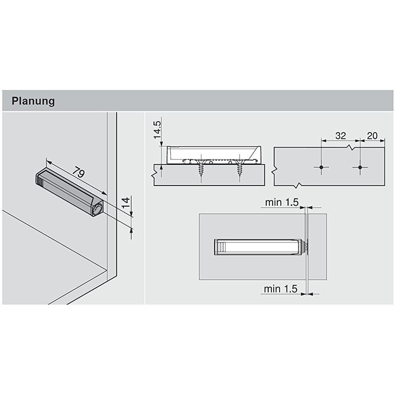 • Model: Blum Tip-On Push Catch 956A1004 – 38 mm – Colour: Turquoise Black