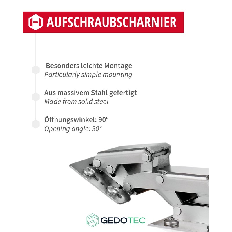 Gedotec Screw-On Hinge Made of Steel, Pack of 2 Furniture Hinges, CH 300 Cara...