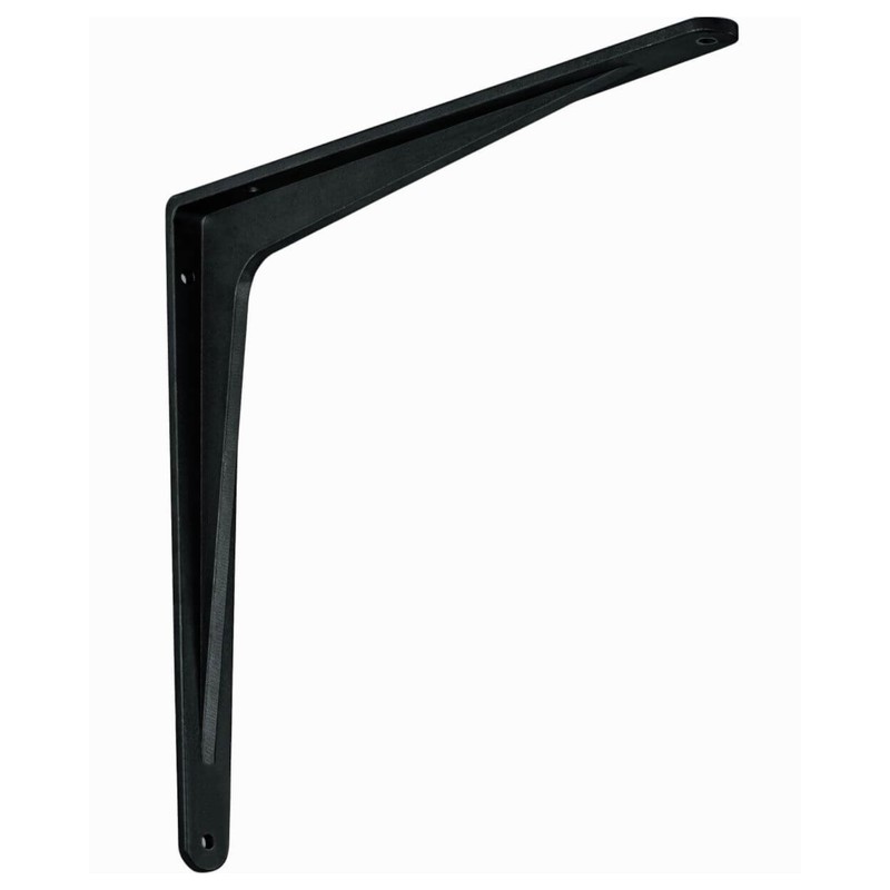 - Specifications: Material: cast aluminium, surface: matt black, extremely stable for heavy loads up to 300 kg per pair, dimensions: 340 x 290 x 39 mm, hole diameter 5 mm, 6-hole punching