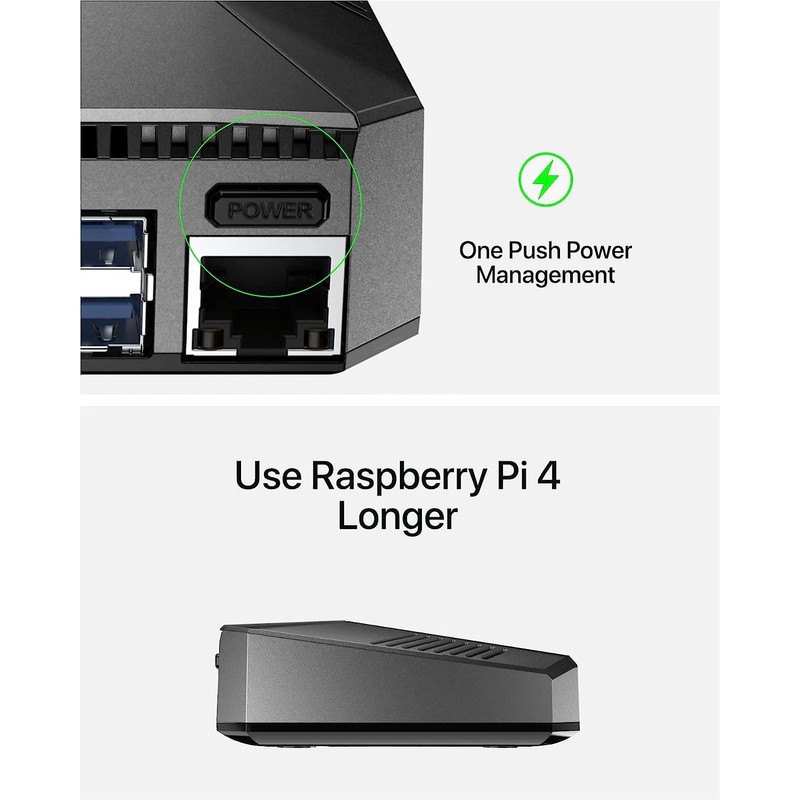 • One push power management: Avoid unnecessary damage and data loss by directly unplugging RPI 4 by using the built-in power switch for safe shutdown. Protect your data and SD card with a secure shutdown with just one touch.