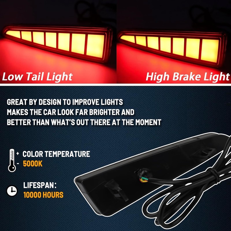 - 🥝. Premium Quality:Crafted with a modern PC lens, these brake reflector lights offer improved illumination and a sleek look. Made from durable ABS housing, they are sealed, waterproof (IP67), and resistant to heat and fading for long-lasting performance.